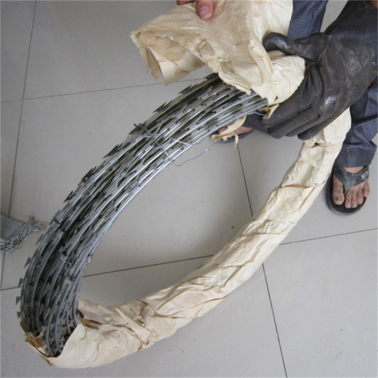 2、平板式刀片刺絲是刀片刺絲的一種新的應(yīng)用方式,它是將單圈式刀片刺網(wǎng)平壓成板狀,或?qū)杉稳Υ叹W(wǎng)壓平后交叉相錯使用,外表美觀而且實用,可與直線式刀片刺絲搭配使用,構(gòu)成下直線上平板的防護墻,或僅用平板式刺絲構(gòu)成防護墻。主要適用于小區(qū)、倉庫、畜牧廠、農(nóng)場、礦山、監(jiān)獄、國防重地等。
