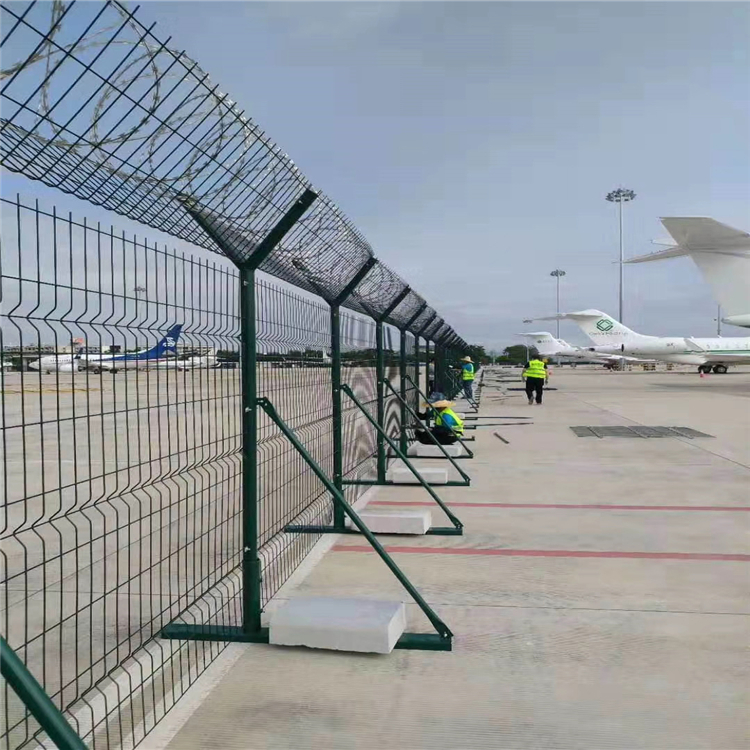 機(jī)場(chǎng)周界鋼絲防護(hù)網(wǎng)其產(chǎn)品造型美觀、花色多樣,既起到圍欄作用,又起到美化作用近年來,被廣泛應(yīng)用在機(jī)場(chǎng),軍事基地護(hù)欄網(wǎng)等高安全場(chǎng)所這種護(hù)欄網(wǎng)的突出特點(diǎn)就是美觀實(shí)用、安全性高、防攀爬能力好,網(wǎng)體連接方式采用特制SBS緊扣件,有效防止人為的破壞性拆卸,橫向四道折彎加強(qiáng)筋,使網(wǎng)面強(qiáng)度顯著增加。我廠可以根據(jù)用戶需要定作各種規(guī)格尺寸的護(hù)欄網(wǎng)產(chǎn)品!