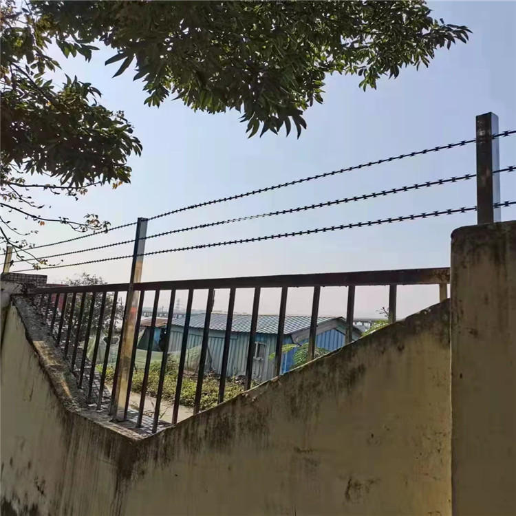 直條型刀片刺網(wǎng)產(chǎn)品類似于鐵絲刺繩,只不過刺的位置為刀片狀,一般3米長(zhǎng)一根,立柱間距也為三米,其長(zhǎng)度也可依客戶要求制作。安裝完成能夠構(gòu)建一道防護(hù)墻,深受監(jiān)獄等防護(hù)性的場(chǎng)所使用,其外觀顏色可以隨意搭配,具有美觀防護(hù)作用。