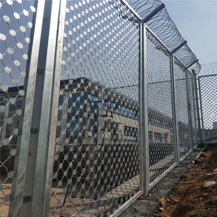 梅花刺鋼網(wǎng)墻是由V型支架立柱;加強(qiáng)型焊接片網(wǎng),安全防盜連接件和熱鍍鋅刀片刺籠組成強(qiáng)度和安全防御性級別很高。用途:近年來,被廣泛應(yīng)用在監(jiān)獄,看守所、軍事基地等高安全場所。