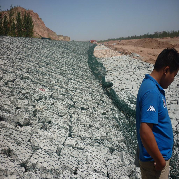 護岸石籠網(wǎng):將裝滿石塊的蜂巢結構形狀的石籠網(wǎng)直接鋪護在堤防或灘岸臨水坡面,防止水流、風浪的侵蝕、沖刷。這種防護形式順水流方向布置,斷面臨水面坡度緩于1:1.0,對水流的影響較小,也不影響航運。? ???