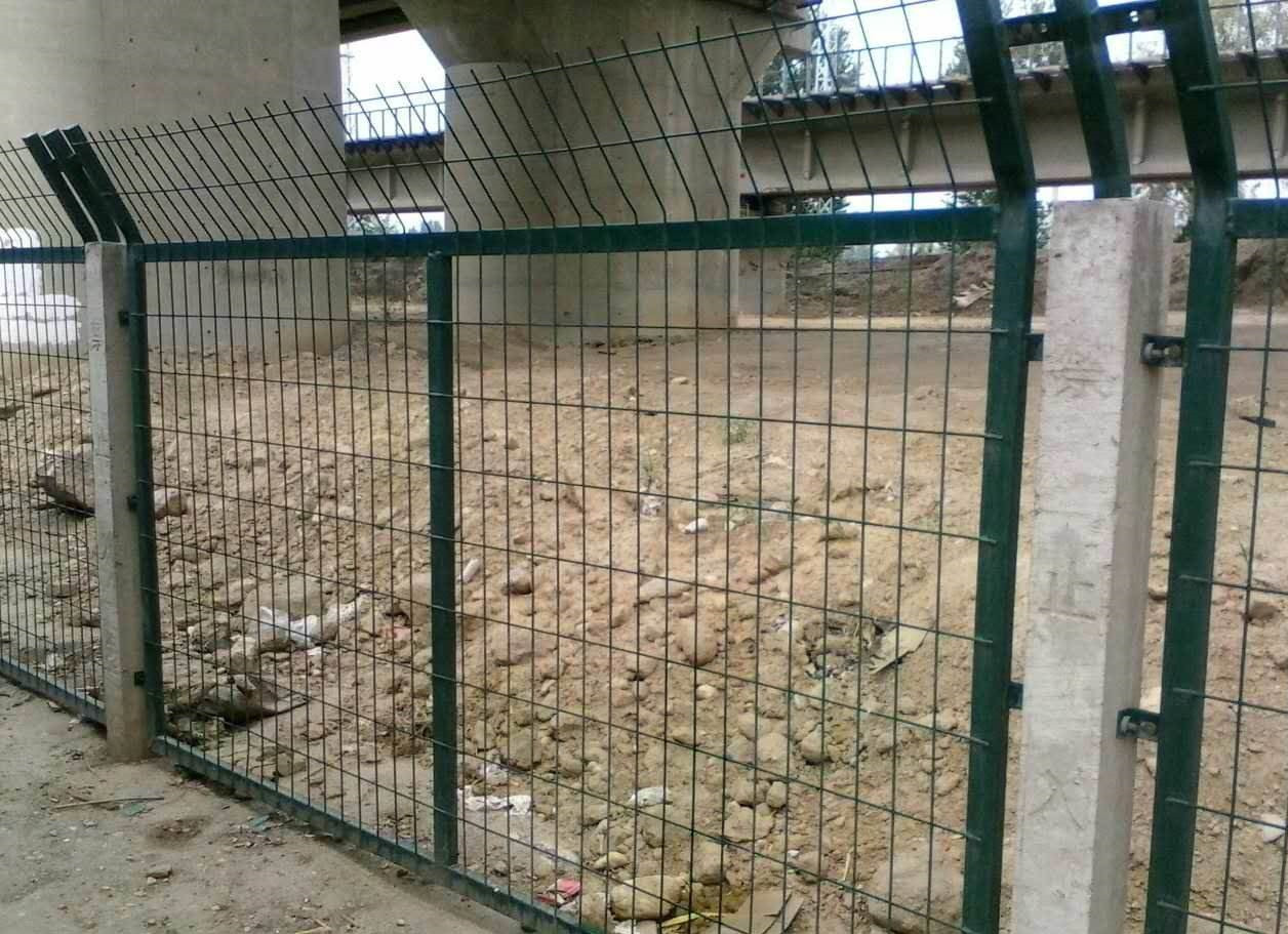 鋼筋混凝土立柱金屬網(wǎng)片防護柵欄由:鋼筋混凝土立柱、金屬網(wǎng)片及連接部件組成,防護高度1.8m。
