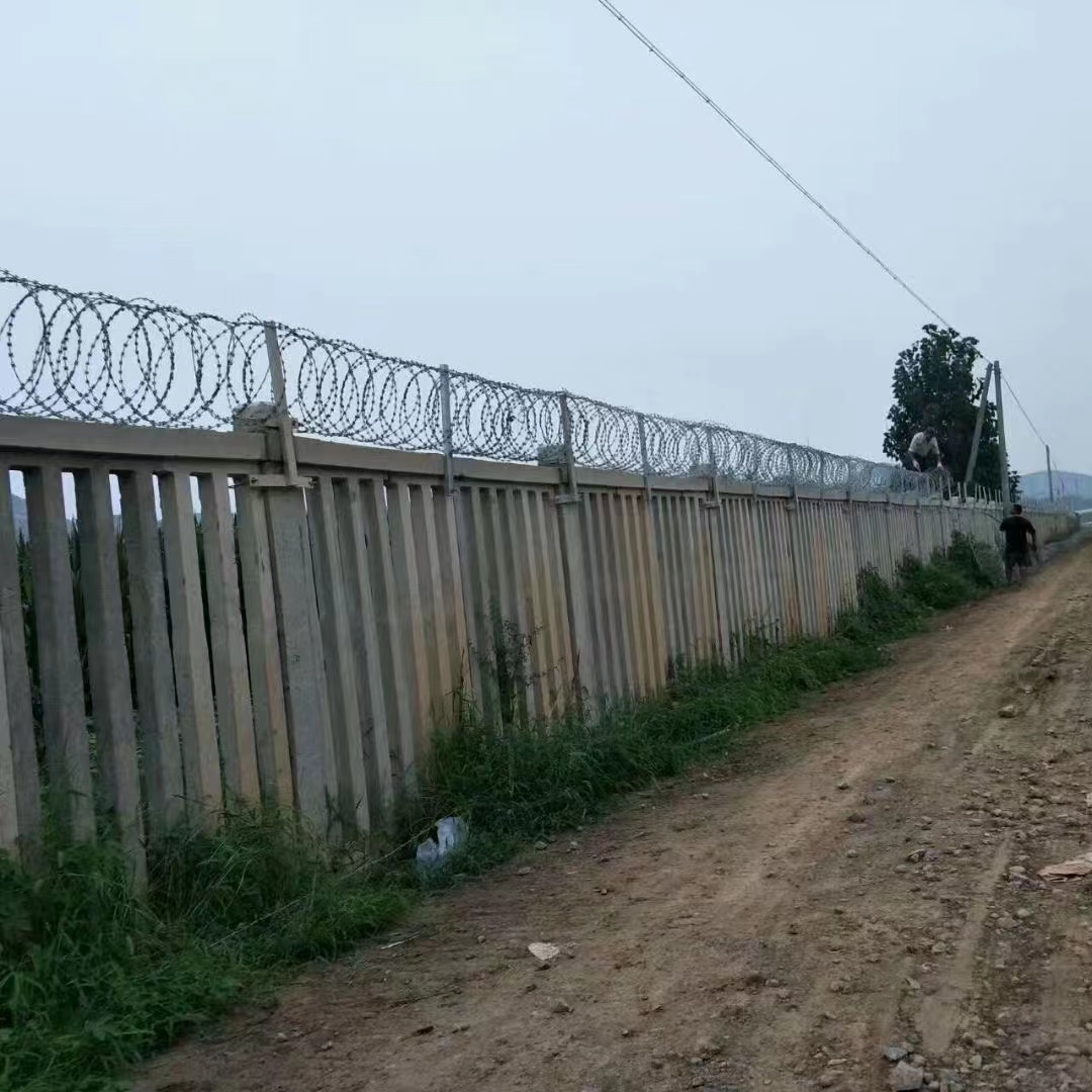 鐵路兩側(cè)水泥柱上安裝刺絲滾籠不僅能保護列車行車安全,而且還起到保護沿線群眾人身安全的作用。鐵路刺絲滾籠防護柵欄主要包括刀片剌網(wǎng),刺繩,和支架及卡扣等。安裝好后具有很好的阻嚇效果,與能起到相同作用的產(chǎn)品比起來性價比是高很多的。主要制作工藝就是由熱鍍鋅鋼板或者不銹鋼鋼板沖壓出尖銳的刀片,然后由高張力鍍鋅鋼絲或者不銹鋼絲來做芯線組合構(gòu)成的防護產(chǎn)品。那鐵路刺絲滾籠要如何安裝使用呢?