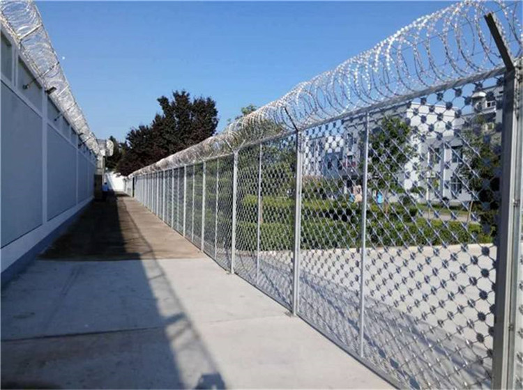 監(jiān)獄護欄網(wǎng)又稱作“Y型安全防御護網(wǎng)”,是由V型支架立柱,焊接片網(wǎng),安全防盜連接件和熱鍍鋅刀片刺籠組成強度和安全。注:如果在監(jiān)獄護欄網(wǎng)頂部加裝刀片刺絲、刀片刺繩安全防護。采用電鍍、熱鍍、噴塑、浸塑等防腐形式,有抗老化、抗曬、耐候等特點。