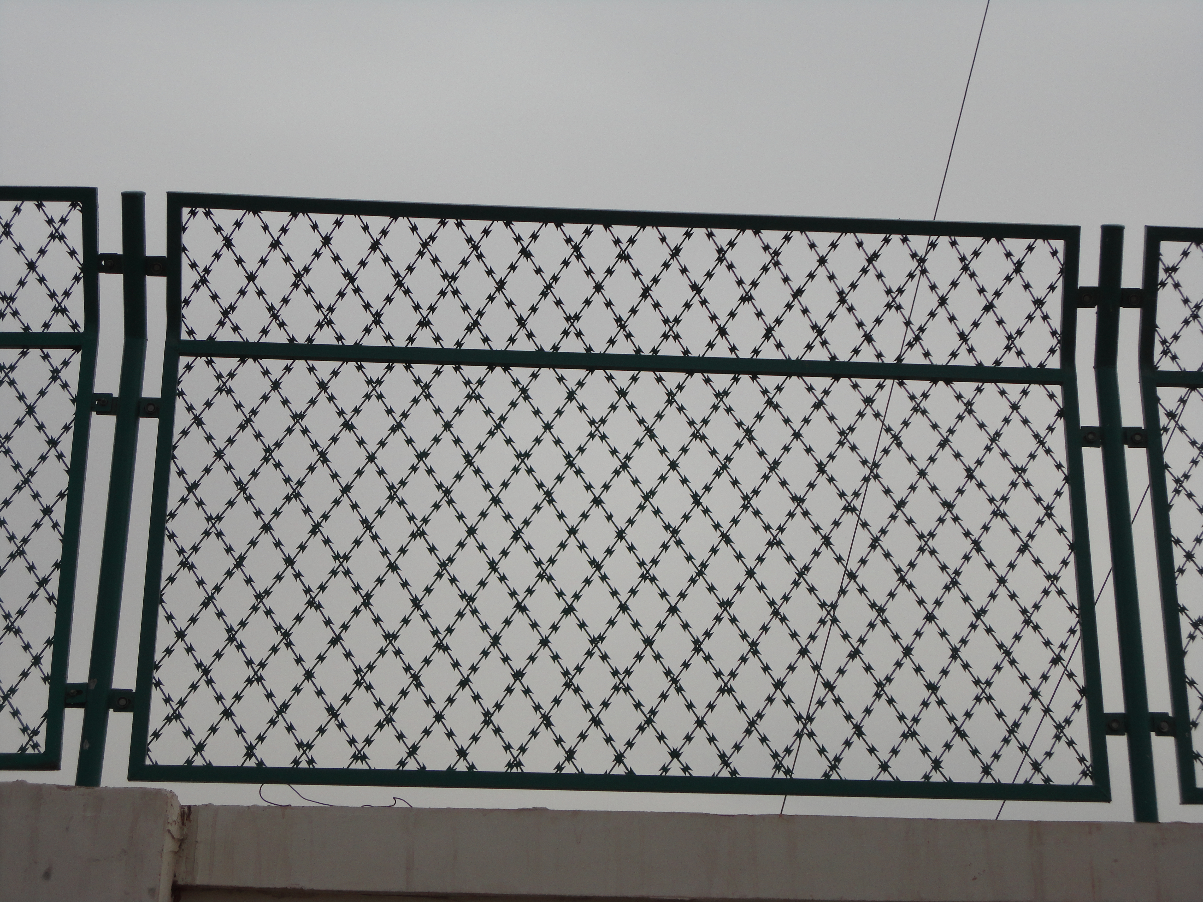 線刀片剌網(wǎng)和蛇腹刀刺網(wǎng)結(jié)合使用,使人望而卻步,擊破人的僥幸心理。