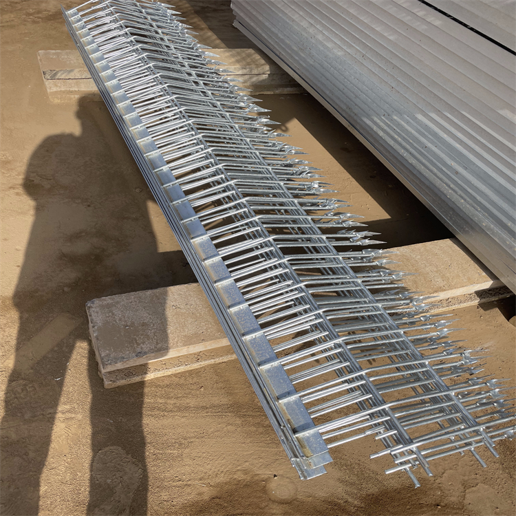 1. 防爬倒刺橫向、豎向鋼筋采用鍍鋅直徑12mm圓鋼,豎向鋼筋總長(zhǎng)度為70cm(直線部分是40cm,彎折角度135°,彎折部分為30cm, ,端頭5cm部分鋼筋壓成尖形;