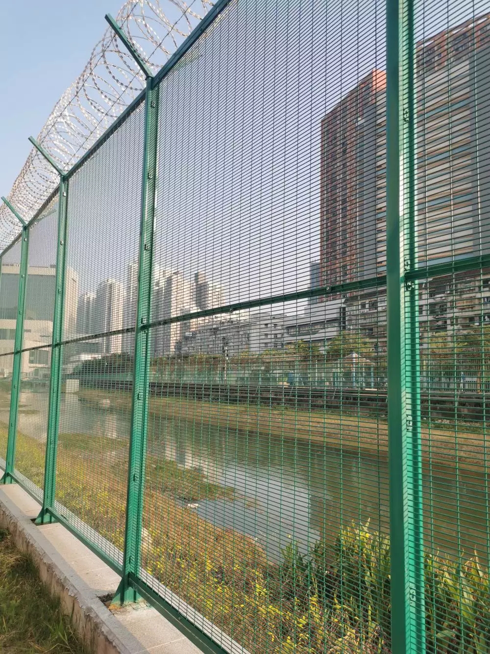 監(jiān)獄放風(fēng)場密紋網(wǎng)一說到監(jiān)獄358密紋大家就能想到是密密麻麻的紋路,確實是,我們常用的規(guī)格在12.5*100mm,12.5*76mm在加上最后進行的靜態(tài)噴塑,也會增加一些厚度,這也就是我們看到的我們能看見的358密紋網(wǎng),最大的優(yōu)點就是防攀爬,因為這種類型的護欄網(wǎng)孔比較小,所以一般的攀爬工具或者手指都很難攀爬,就算借住大剪刀這些工具也很難去剪斷它,在安全防護方面絕對是沒問題的!