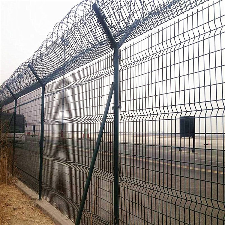 機(jī)場圍界是由Y型立柱、加強(qiáng)型焊接網(wǎng)片、安全防盜連接件和熱鍍鋅刀刺滾籠組成安全防御性級別很高的隔離網(wǎng)產(chǎn)品。機(jī)場圍界表面采用電鍍、熱鍍、噴塑或浸塑等防腐形式,具有良好的抗腐蝕、抗曬、抗老化的優(yōu)點(diǎn)。其造型美觀,既安全作用又有美觀作用。被廣泛應(yīng)用在機(jī)場、監(jiān)獄、軍事基地等高安全場所。
