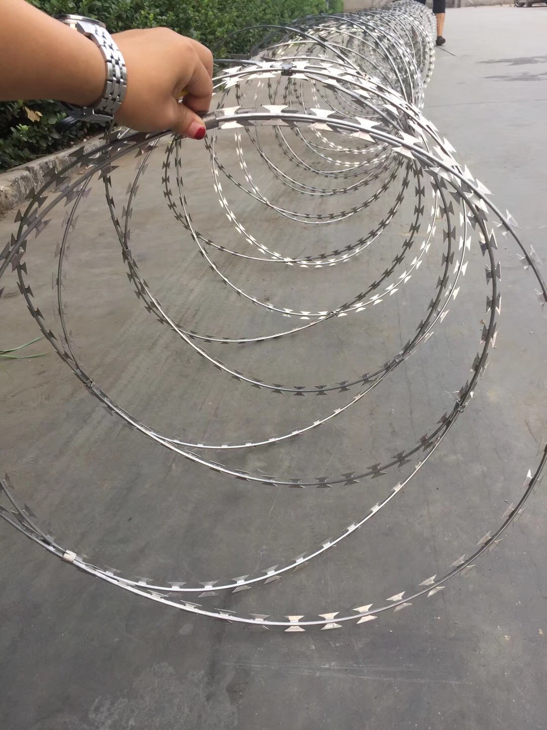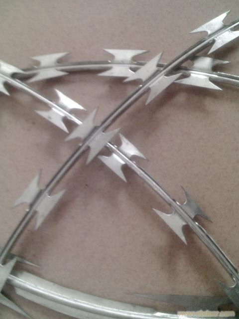 刀片刺絲網(wǎng)是一種新型防護網(wǎng),該產(chǎn)品具有防阻效果好。美觀,施工便利,經(jīng)濟實用等優(yōu)異特點。主要用于園林公寓,機關(guān)單位,監(jiān)獄哨所,邊防等圈禁防護。
