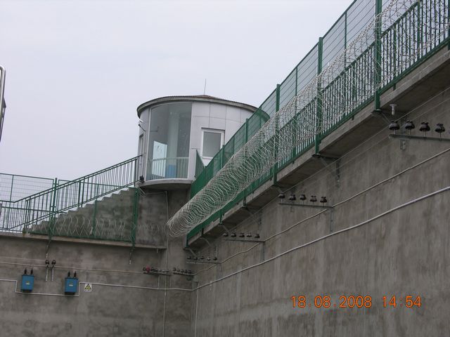 監(jiān)獄鋼網(wǎng)墻也叫Y型安全防御網(wǎng),是由V型支架立柱、 加強(qiáng)焊接網(wǎng)片、防盜連接件和熱鍍鋅蛇腹式刺絲滾籠組成的安全防護(hù)性能很高的護(hù)欄