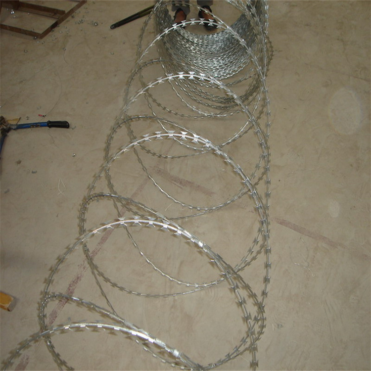 鋼薄板沖壓出尖銳的刀片狀,高張力鍍鋅鋼絲或者不銹鋼絲做芯線組合而成的阻絕器材。并沒有達到客戶的標準厚度和尺寸。安裝剌絲滾籠
