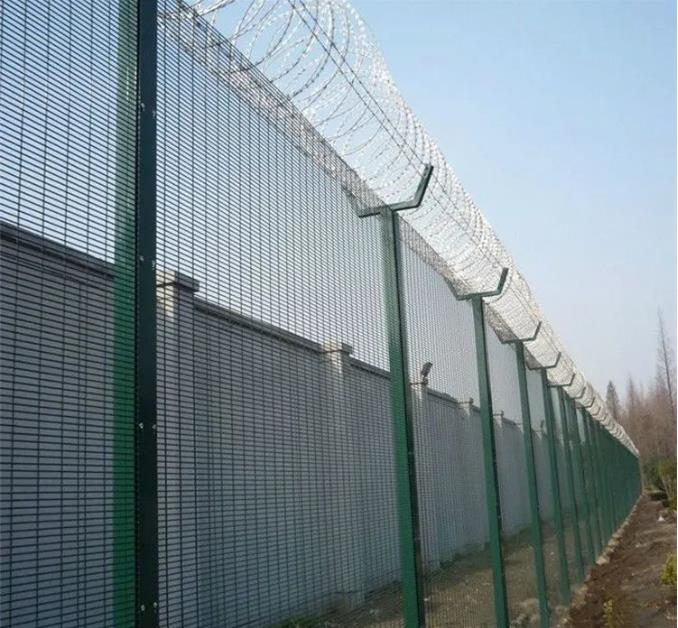 監(jiān)獄放風(fēng)場(chǎng)密紋網(wǎng)(護(hù)欄網(wǎng))整體制作要求都要格外嚴(yán)格除了網(wǎng)面要求焊接點(diǎn)的牢固之外,還有就是網(wǎng)面的平整度。其次就是表面處理要求光澤鮮亮防腐性能高。配件更是整個(gè)護(hù)欄網(wǎng)的核心部分。需和立柱連接的完美對(duì)接配件螺絲要求牢固,采用高強(qiáng)的抗腐蝕并且具有防盜功能的扭斷螺栓。螺絲材質(zhì)采用304不銹鋼。這種價(jià)位比較高建議沿海地區(qū)采里,如不是沿海地區(qū)建議采里鋁合金材質(zhì)的螺栓造價(jià)便宜一點(diǎn)也不影響壽命,在安裝討程中必須由專用工具和經(jīng)驗(yàn)豐富的安裝人員。