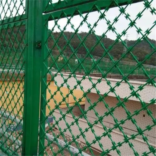 八、刀片刺網(wǎng)隔離網(wǎng)防腐工藝:進(jìn)行科學(xué)的防腐處理,要求實(shí)際使用壽命在10年以上。采用熱鍍鋅加浸塑處理,上鋅量>300g/m2,專用PVC塑粉,上塑量>O.7mm,表面無針孔、開裂、漏塑、塑液流淌等質(zhì)量缺陷,顏色為墨綠色。