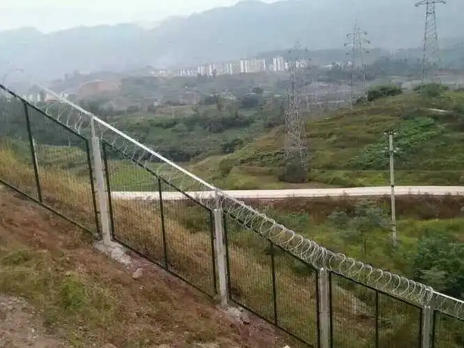 農(nóng)場(chǎng)防護(hù)帶刺鐵絲網(wǎng)是一種用于防護(hù)和安全的設(shè)備,它由一系列尖銳的刀片組成,通常安裝在圍墻、柵欄或其他障礙物上。這種刺網(wǎng)的設(shè)計(jì)目的是為了阻止入侵者進(jìn)入特定區(qū)域,同時(shí)提供一種高效的防護(hù)措施。