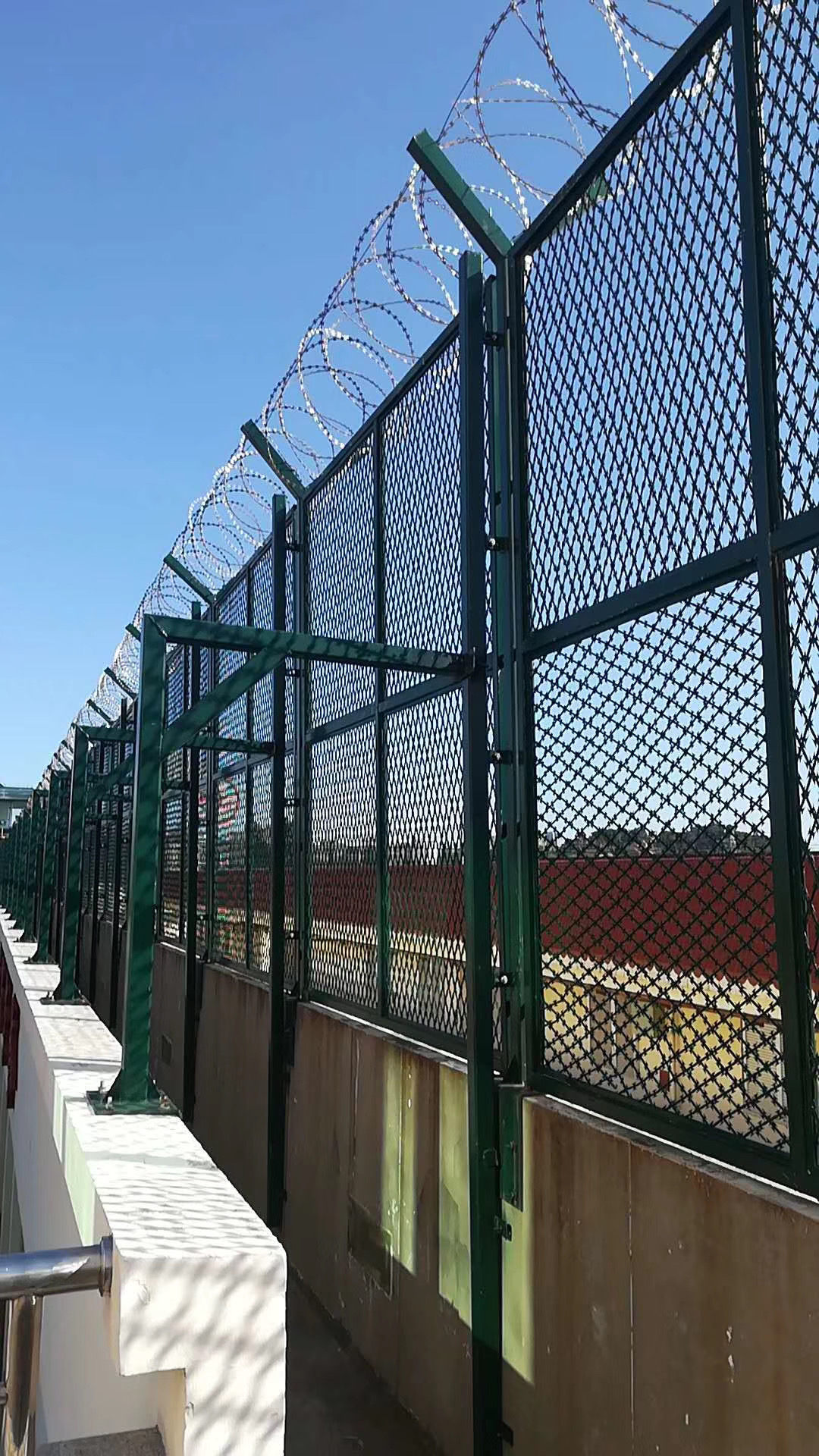 2. 防腐蝕材料:監(jiān)獄巡邏道隔離網(wǎng)需要長期暴露在室外環(huán)境中,容易受到氧化、腐蝕等因素的影響。因此,材料選擇上應考慮具有良好防腐蝕性能的材料,如不銹鋼、鍍鋅鋼等。這些材料能夠有效地抵御氧化和腐蝕,延長使用壽命。