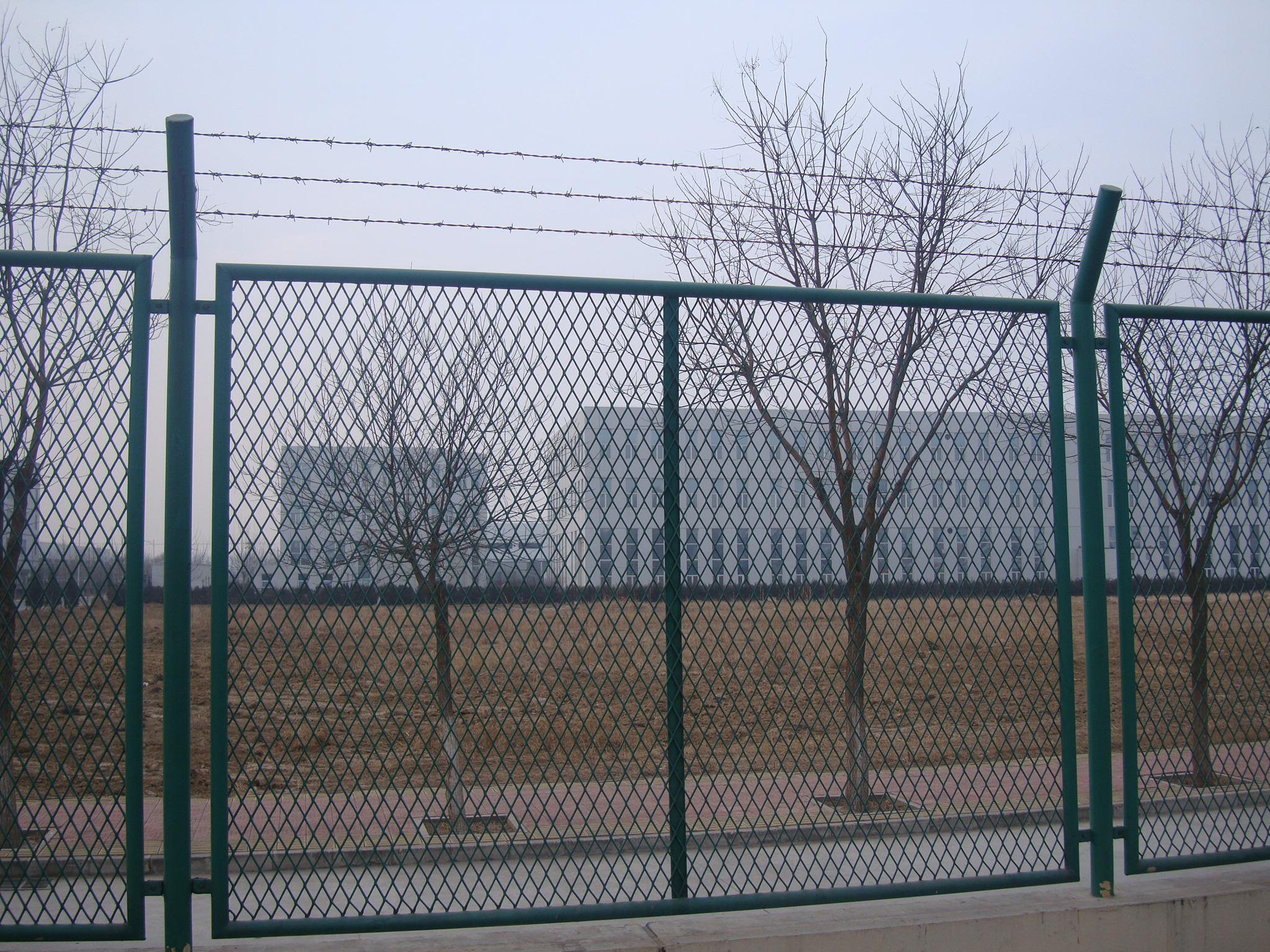 隔離網(wǎng)部分可采用鋼筋焊接隔離網(wǎng)、密紋隔離網(wǎng)、鋼板網(wǎng)沖拉隔離網(wǎng)、刀刺焊接網(wǎng)等等。高度一般為4米-5米,更好的來(lái)防止攀爬。