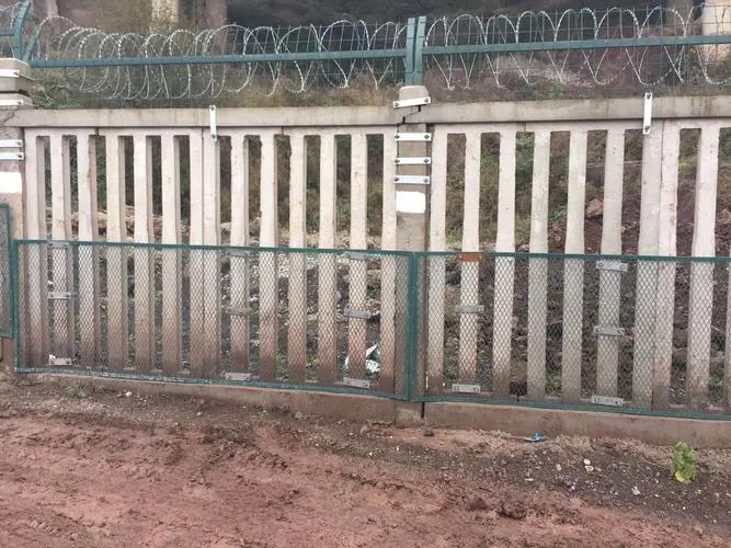 1、高度1m,網(wǎng)孔5*5cm,網(wǎng)絲3.0cm;加密網(wǎng)表面處理或浸塑,鋅鋁涂層不低于200g/㎡;鋅鋁涂層網(wǎng)片適用于混凝土柵欄區(qū)段,浸塑網(wǎng)片適用于浸塑類柵欄地段;