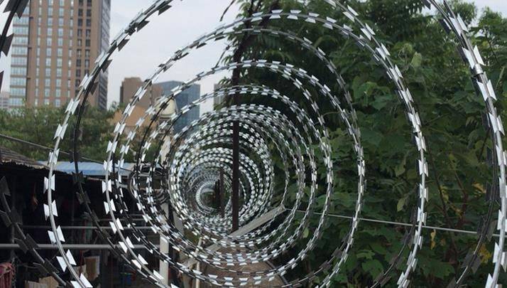 鍍鋅刀片刺網(wǎng)又名刮刀型刺絲,是一種發(fā)展起來的防護(hù)、隔離能力較強(qiáng)的新型防護(hù)網(wǎng)產(chǎn)品。 鋒利的刀型刺由雙線扣裝后成蛇腹?fàn)睿让烙^又讓人不寒而栗。到了很好的阻嚇作用。同時(shí)該產(chǎn)品具有美觀、防阻效果好、施工便利等優(yōu)點(diǎn)。
