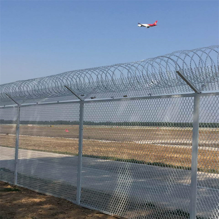 機(jī)場(chǎng)圍界采用5.0mm高強(qiáng)度低碳鋼絲進(jìn)行精密焊接,確保了其穩(wěn)固性。網(wǎng)孔設(shè)計(jì)為50mmX100mm和50mmX200mm,既保證了通透性,又增強(qiáng)了防護(hù)效果。網(wǎng)片中巧妙地加入了V型加強(qiáng)筋,這一設(shè)計(jì)顯著提升了圍網(wǎng)的抗沖擊能力。
