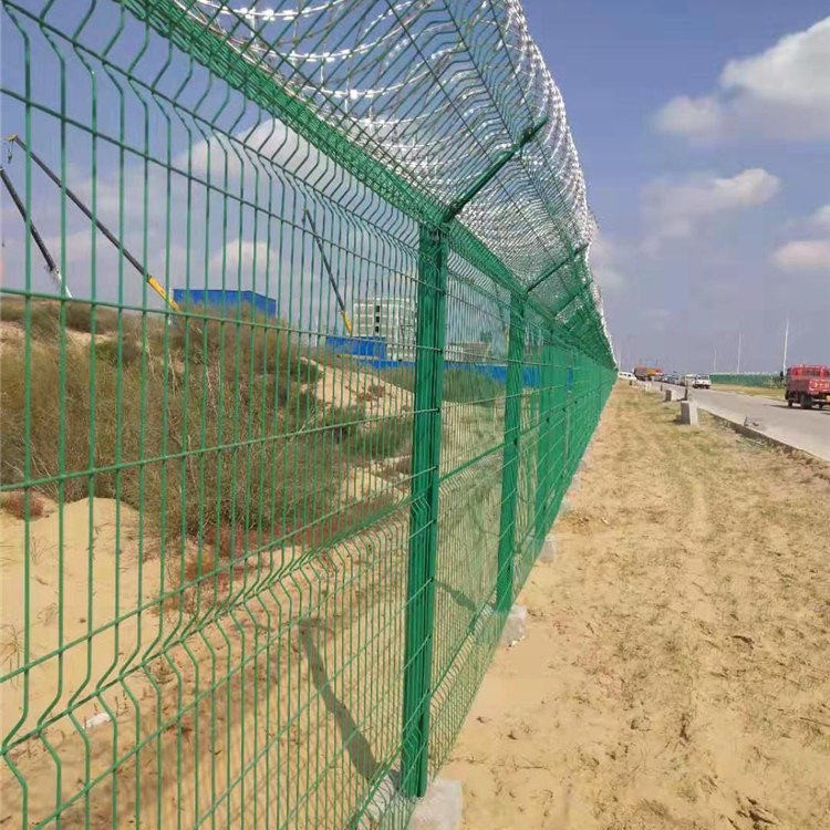 機(jī)場護(hù)欄網(wǎng)又稱作“Y型安全防御護(hù)網(wǎng)”,是由V型支架立柱加強(qiáng)型焊接片網(wǎng),安全防盜連接件和熱鍍鋅刀片刺網(wǎng)組成強(qiáng)度和安全防御性級別很高。被廣泛應(yīng)用在機(jī)場,基地等高安全場所。