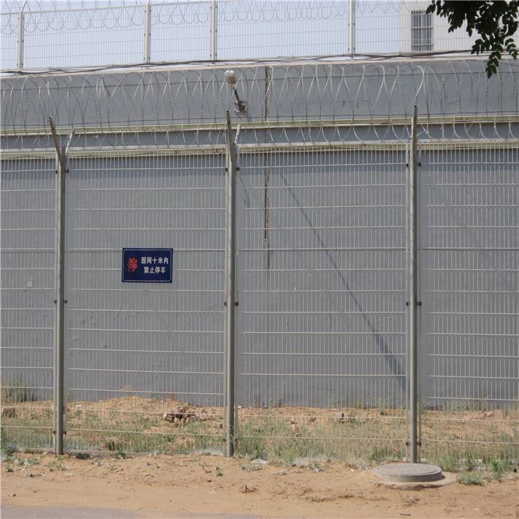 1.看守所防攀爬隔離網(wǎng)通常采用鋼絲直徑為5mm、6mm、6.5mm,網(wǎng)孔采用50mm*100mm、50mm*50mm、50mm*200mm、50mm*150mm。