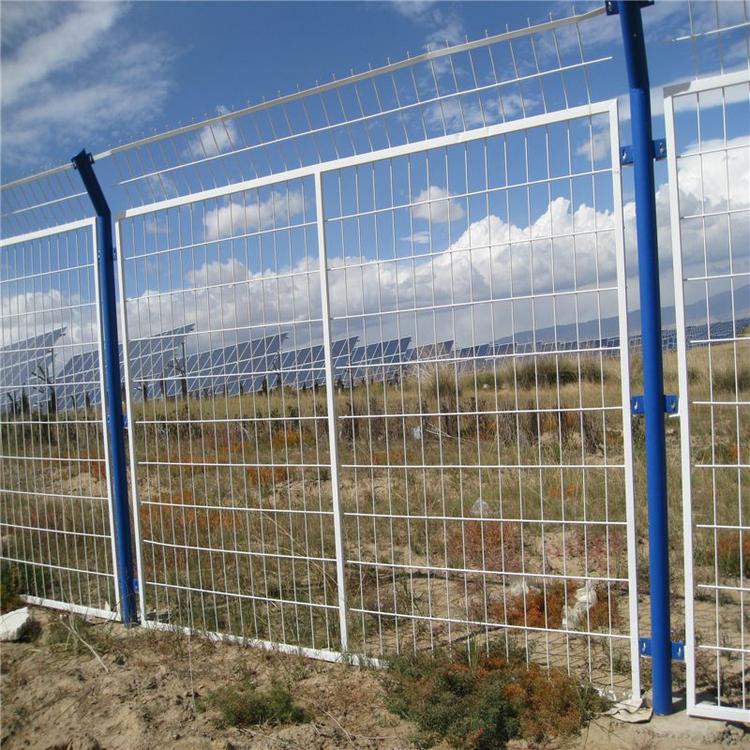 5.圍網網格尺寸170*85,鐵絲直徑浸塑4mm,鋼管直徑50mm,壁厚不小于2mm。外傾防攀爬角度30度。