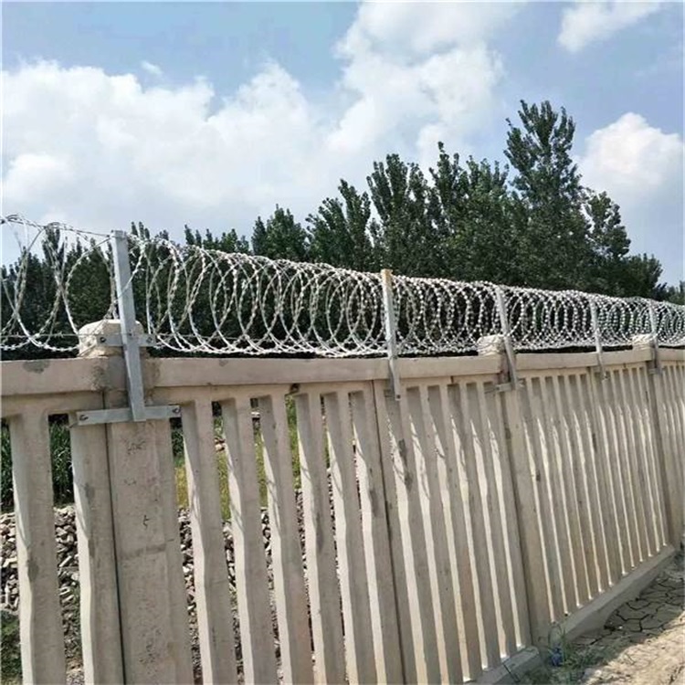 刺絲滾籠是在兩條刀片刺網(wǎng)之間以不銹鋼片和鍍鋅鋼片強(qiáng)力夾扣,展開(kāi)后即呈交叉狀,具有防腐、防老化、抗曬、耐候等特點(diǎn)。