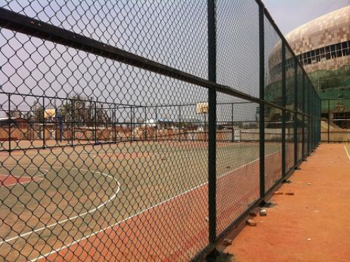 6米高體育場(chǎng)圍欄網(wǎng)的材質(zhì)為美觀及保證質(zhì)量,絕大部分采用PE包塑鐵絲網(wǎng)做籃球場(chǎng)的圍網(wǎng),既可節(jié)省每年為普通鐵絲重新油漆的費(fèi)用,其使用壽命又較普通鐵絲網(wǎng)長(zhǎng)三~五年,網(wǎng)孔規(guī)格為45mm×45mm,可以保證不會(huì)卡住或穿過網(wǎng)球。